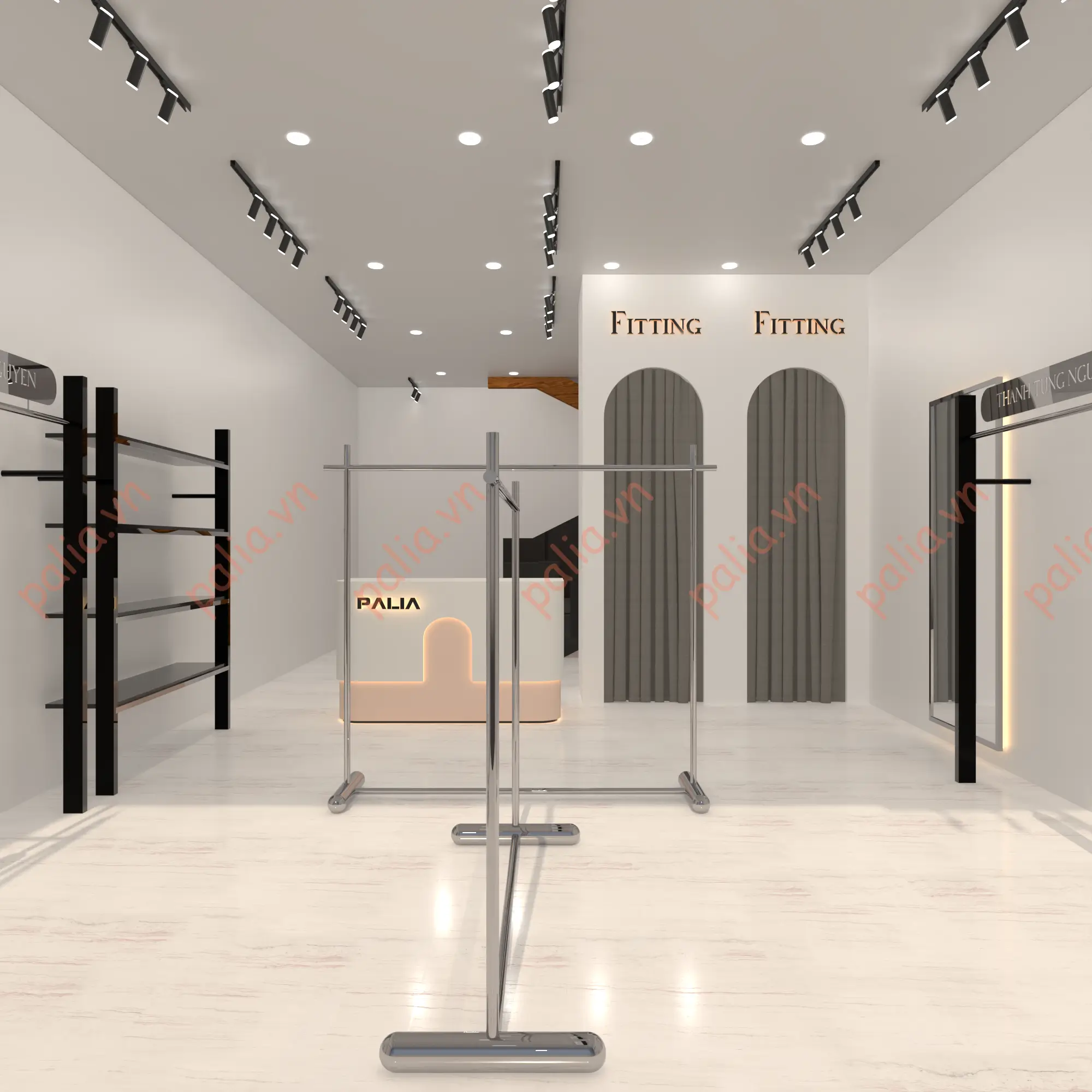 Ngoài ra xưởng Palia nhận thiết kế, sản xuất, thi công tất cả các mẫu giá kệ theo ý tưởng, yêu cầu riêng của khách hàng. Anh chị cần tư vấn thêm các mẫu giá treo quần áo đẹp cho shop thời trang hoặc gia đình vui lòng liên hệ Call, zalo 0988210328 – 0984526199 – 0971800179.